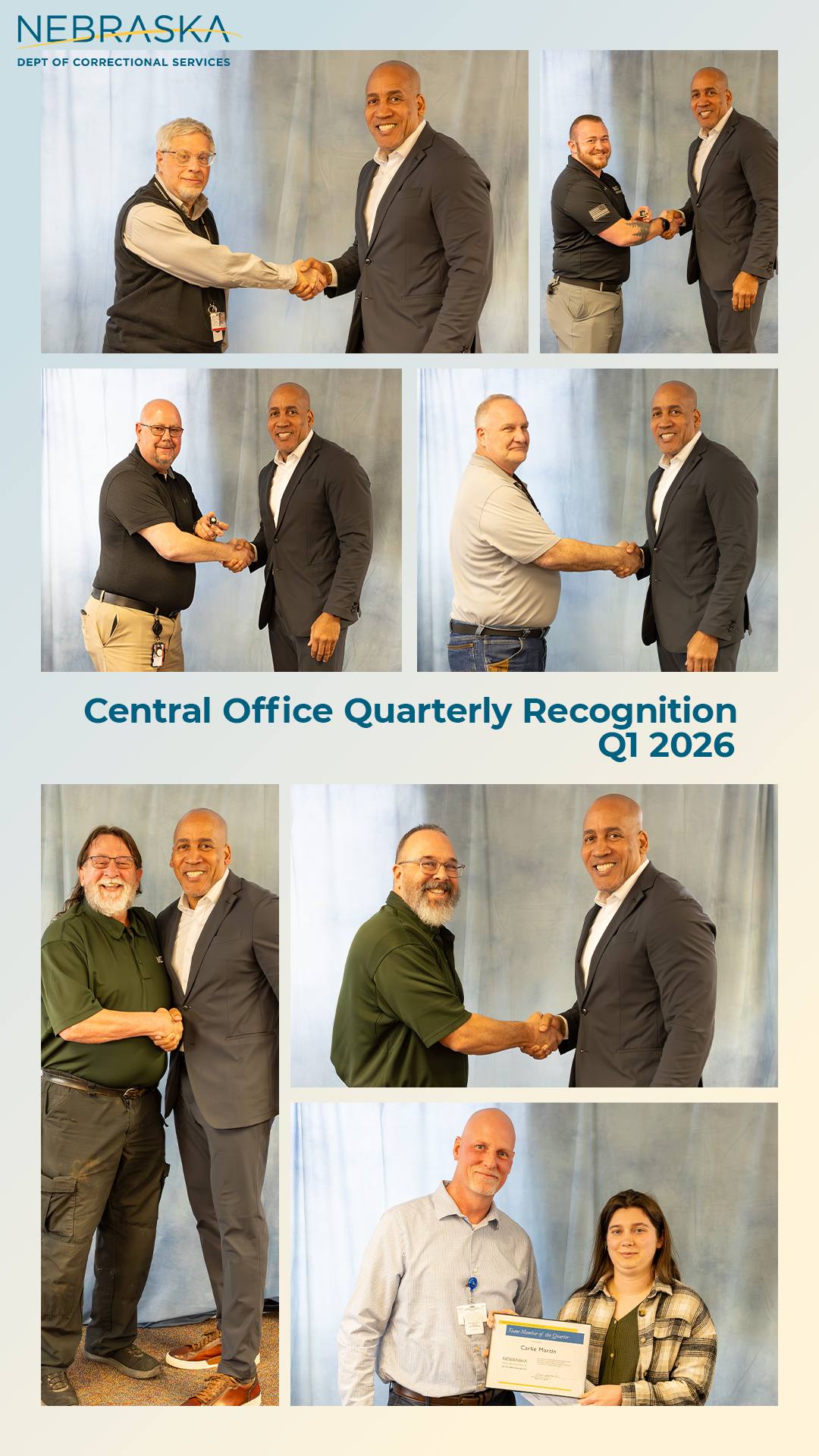 A huge shoutout to these NDCS teammates at Central Office (CO)! They were recognized as some of the great #People of CO for their years of service, supervisor of the quarter and employee of the quarter.