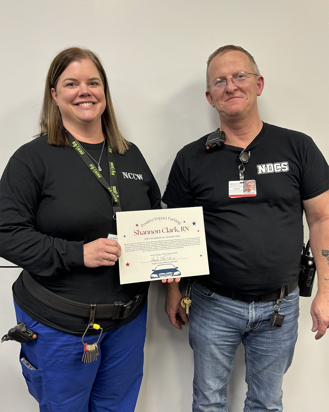The NCCW Positive Impact Parking for January was awarded to Mental Health Nurse Shannon Clark, recognizing her dedication and exceptional care for her patients. Her professionalism, leadership and attitude uplift patients and set a positive example for teammates, going the extra mile to create an environment for compassionate care. Thank you for all you do for NDCS; it’s #People like Shannon who make our teams great!